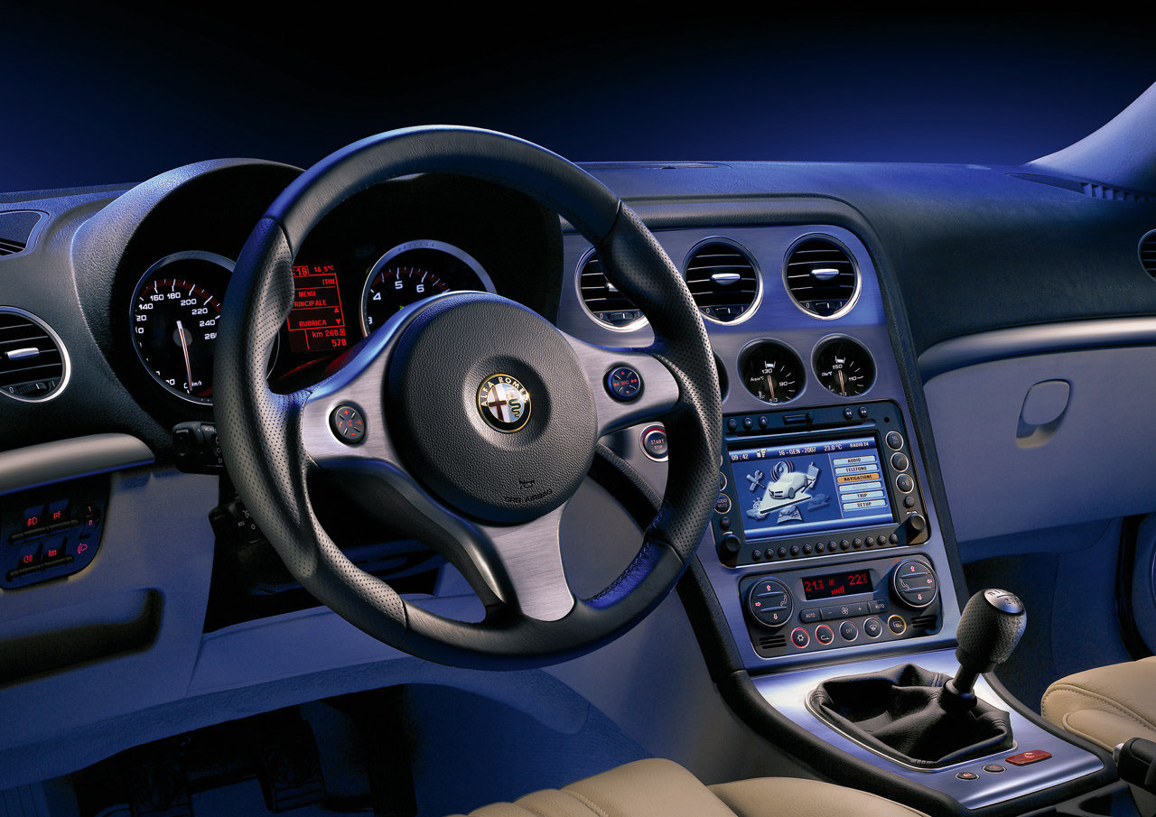 Kabine ilk girildiğinde algılanan kalite düzeyi şaşırtıcı derecede yüksek. Tipik Alfa Romeo özelliklerinden klasik yuvarlak göstergelerin kullanıldığı orta konsol sürücüye dönük tasarlanmış. Derin yerleşimli bu göstergelerden biri turbo basınç göstergesine ayrılmış. ****lik kaplamalı üç kollu direksiyonun üzerindeki kumandalar çok kullanışlı olmamış, işleyişleri de yeterince rafine değil. Bugünün moda trendi olan kartlı çalıştırma sistemine sahip otomobilde kullanılan müzik sistemi ve klima ünitesi alışılagelmişlerden farklı tasarıma sahip. Özellikle gece kullanımlarında gözlenen düğme aydınlatmaları Japonlar başta olmak üzere diğer üreticilere yol gösterecek nitelikte. Bu düğmeler gibi kırmızı renkle aydınlatılan gösterge tablosunda hız ve devir saatlerinin ibreleri, tipik Alfa Romeo dinamizm felsefesine uygun olarak saat 6 pozisyonundan yukarı tırmanmaya başlıyor. Tablodaki LCD ekranda yol bilgisayarı, müzik sistemi ve birimlerle ayarlar görüntülenebiliyor. Modları görmek ve ayarlamak için sinyal kolunun ucundaki düğmeleri kullanmak gerekiyor. LCD ekranda beliren dijital km sayacında en dikkat çekici özellik digitlerin analog sayaçlardaki gibi atıyor olması. Direksiyon kolonunda hız sabitleme sistemi kolu sinyal kolunun altına yerleştirilmiş. Ama bu kol dik oturulduğunda bacağa değebiliyor. Alfa 159′un koltuklarında GT’den pek farklı olmayan tipik sportif tasarım özellikleri gözleniyor. Yüksek yanal desteklere sahip ferah diz mesafeli koltuklarda baldır destekleri de var. Koltuk ısıtmaları kapı tarafındaki alt plastiğe yerleştirilmiş.