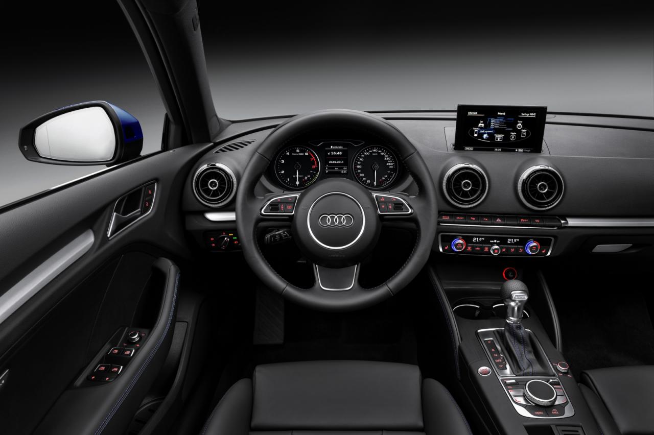 Otomobilin içerisinde Audi standartlarını birebir yansıtan şık bir kabin bizleri karşılıyor. Malzeme kalitesi ve işçilik üstü seviyelerde. Selefinde kullanılan sert plastikler yerini yumuşak detaylara bırakmış. Sportif görünüm anlamında gösterge paneli ve Stronic logolu vites topuzu ön plana çıkarken, otomobilin teknolojik karakteri de bir düğme ile ortaya çıkan ekrandan anlaşılabiliyor. İnternete bağlantı imkânı sunan bu ekran navigasyon özelliğini de itinalı bir şekilde yerine getiriyor. Vites kolunun hemen arkasındaki düğmeler ile bu ekrana müdahale edilebilir özelliği ile ergonomi anlamında da sürücüye destek veriyor. Bu düğmenin özellikleri saymakla bitmiyor. Düğmenin üst tarafı touch pad gibi işlev görebiliyor. Dilediğinizde bu yüzeyden harfler çizebilir mouse gibi yönlendirme yapabilirsiniz. A3, ses sistemi konusunda da beğenimizi kazandı. MMI ekran sistemiyle bütünleşik olan bu yapı otomobil de kaliteli müzik dinlemek isteyenleri kalbinden vuracak. Sistem kontrol düğmesi gibi müzik sisteminin de kontrol düğmesi vites topuzunun hemen sağına yerleştirilmiş.