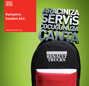 Renault Trucks servislerinden alabileceğiniz bu çantalar için minimum 300 TL’lik bir harcama yapmanız gerekiyor. Ve bu harcamaların yağ ve işçi için olmaması gerekiyor. Eğer bunları yaptığınız takdirde yukarıdaki resimde gördüğünüz çantanın sahibi olacaksınız. Renault Trucks Türkiye Müşteri Hizmetleri Direktörü bu konu hakkında şu açıklamalarda bulundu : “Müşterilerimizin ihtiyaçlarını Yetkili Servislerimizin sunduğu hizmet kalitesi ve orijinal parça avantajlarını ile karşılarken, çocukları da düşündük. Yaklaşan eğitim-öğretim yılında tüm çocuklarımıza başarılar dileriz”