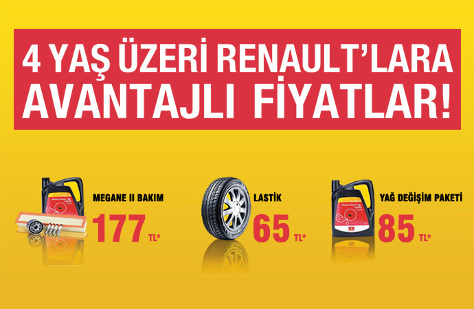 Renault, kampanyalarına sadece araç satışında değil yedek parça ve servis hizmetlerinde de devam ediyor. Renault’tan tescilli yedek parça firması Mortio, 4 yaşını aşmış Renault’lar için cebinize uygun paketler ve devamlı fiyat avantajıyla karşınıza çıkıyor. Buna göre Megane bakım 177 TL, lastik 65 TL, yağ değişim paketi 65 TL’den başlayan fiyatlardan sunuluyor.