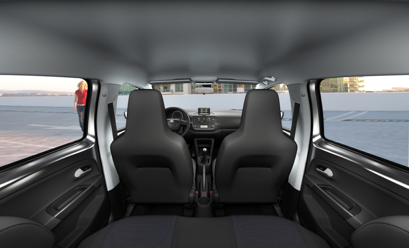 Gösterge panelinin hoş bir arka ışıklandırması vardır. Citigo’nun üst seviye gösterge panelinde analog devir ve yakıt göstergesi, yol bilgisayarı ve dijital soğutma suyu sıcaklık göstergesi ile uyumlu bir bütünlük oluşturur.